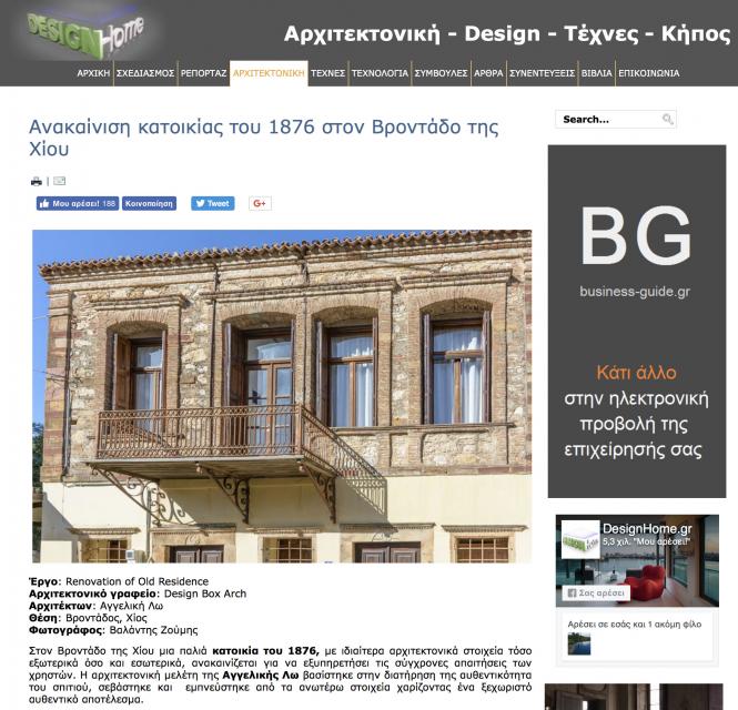 DESIGNHOME.GR :ΔΗΜΟΣΙΕΥΣΗ ΑΡΘΡΟΥ ΓΙΑ "ΑΝΑΚΑΙΝΙΣΗ ΚΑΤΟΙΚΙΑΣ ΣΤΟΝ ΒΡΟΝΤΑΔΟ ΤΗΣ ΧΙΟΥ".