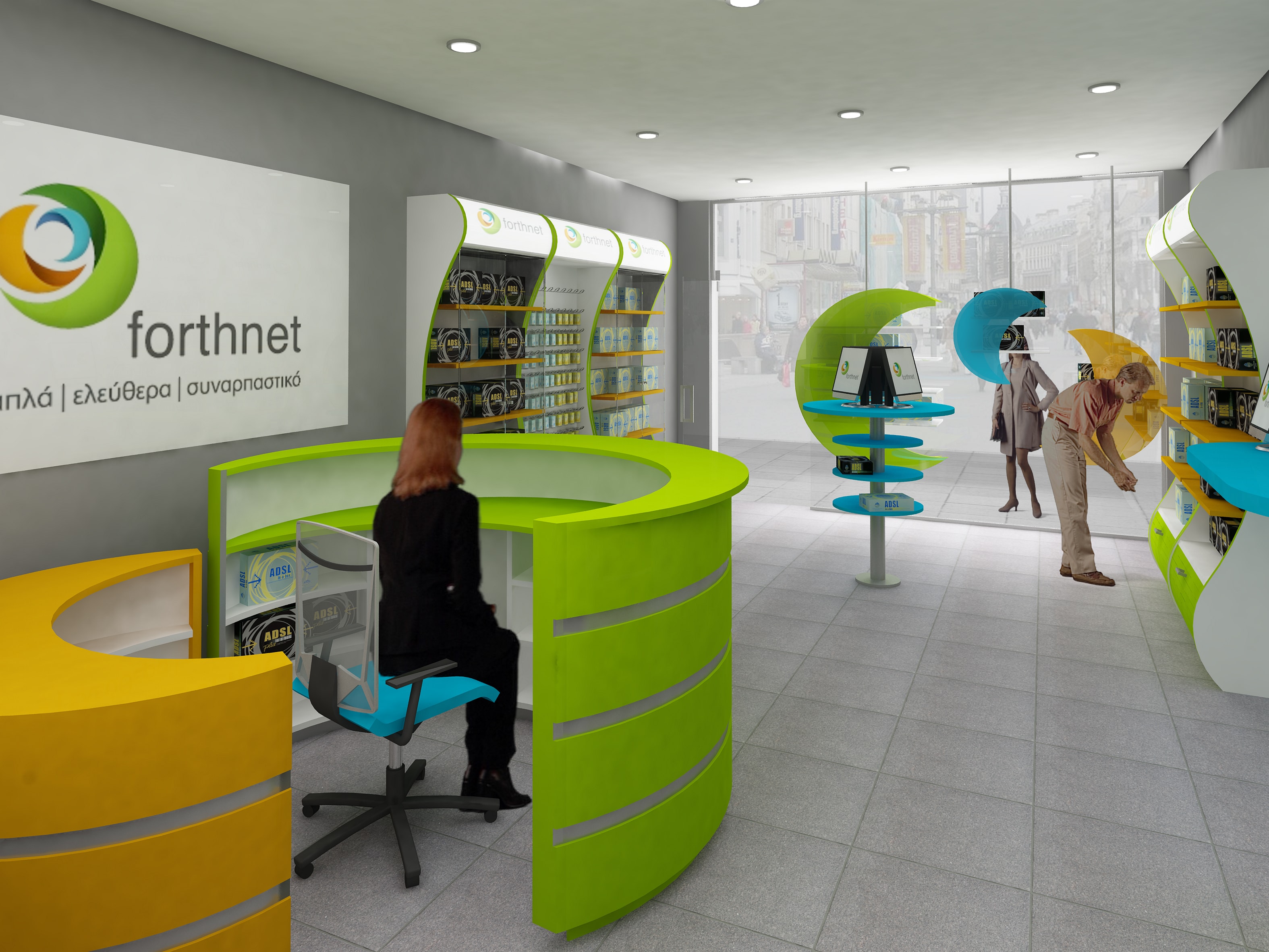 Το 2007, με αφορμή την αλλαγή του σήματος και του λογότυπου της εταιρείας “FORTHNET”, προκηρύχτηκε αρχιτεκτονικός διαγωνισμός που αποσκοπούσε στην ανανέωση της εικόνας της εταιρείας και των καταστημάτων της. Ο διαγωνισμός αφορούσε τον σχεδιασμό και την κατασκευή πρότυπου καταστήματος και ενός περιπτέρου “shop in shop” μέσα σε πολυκατάστημα.