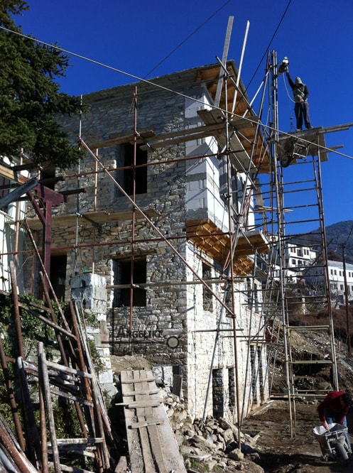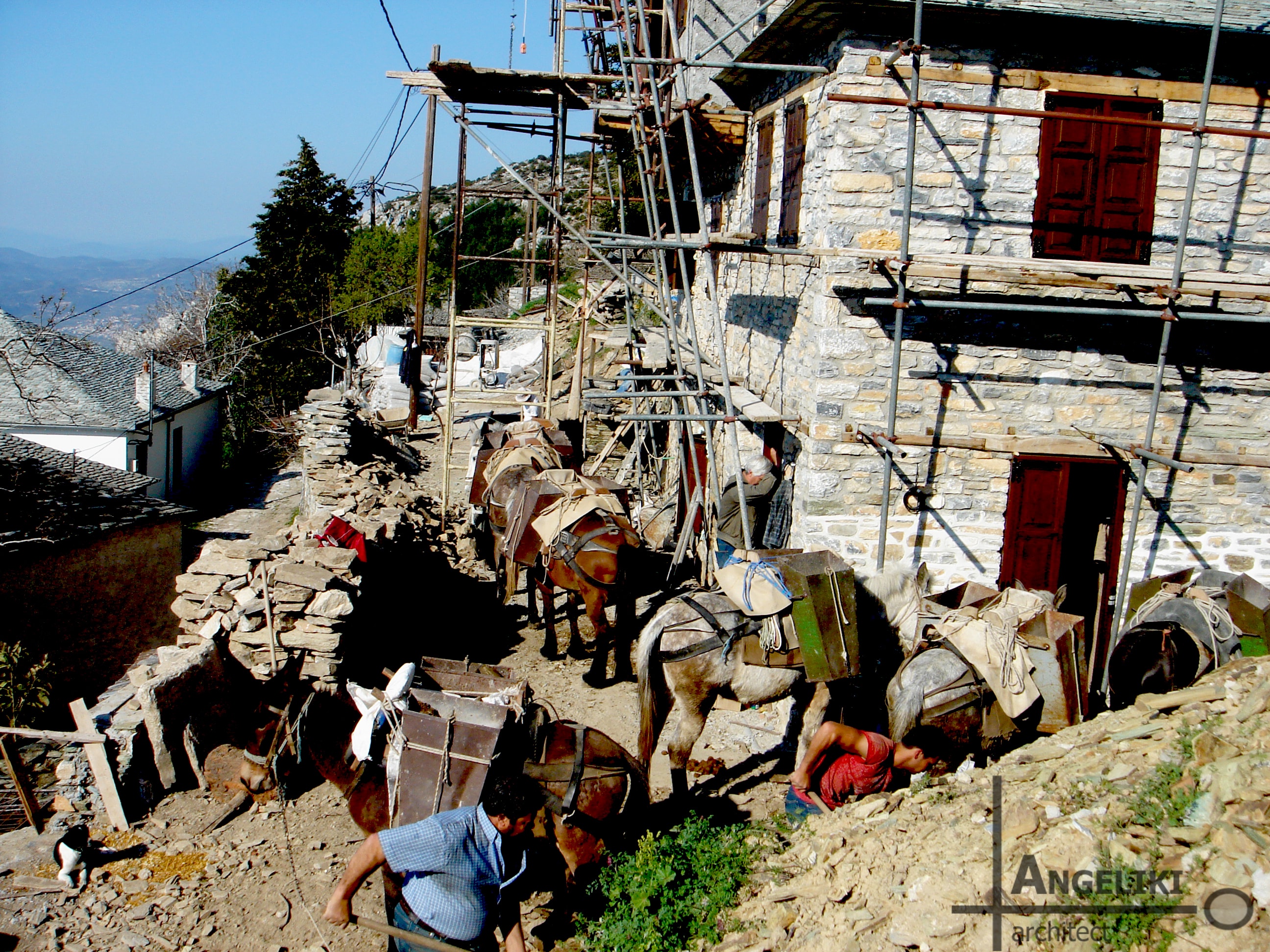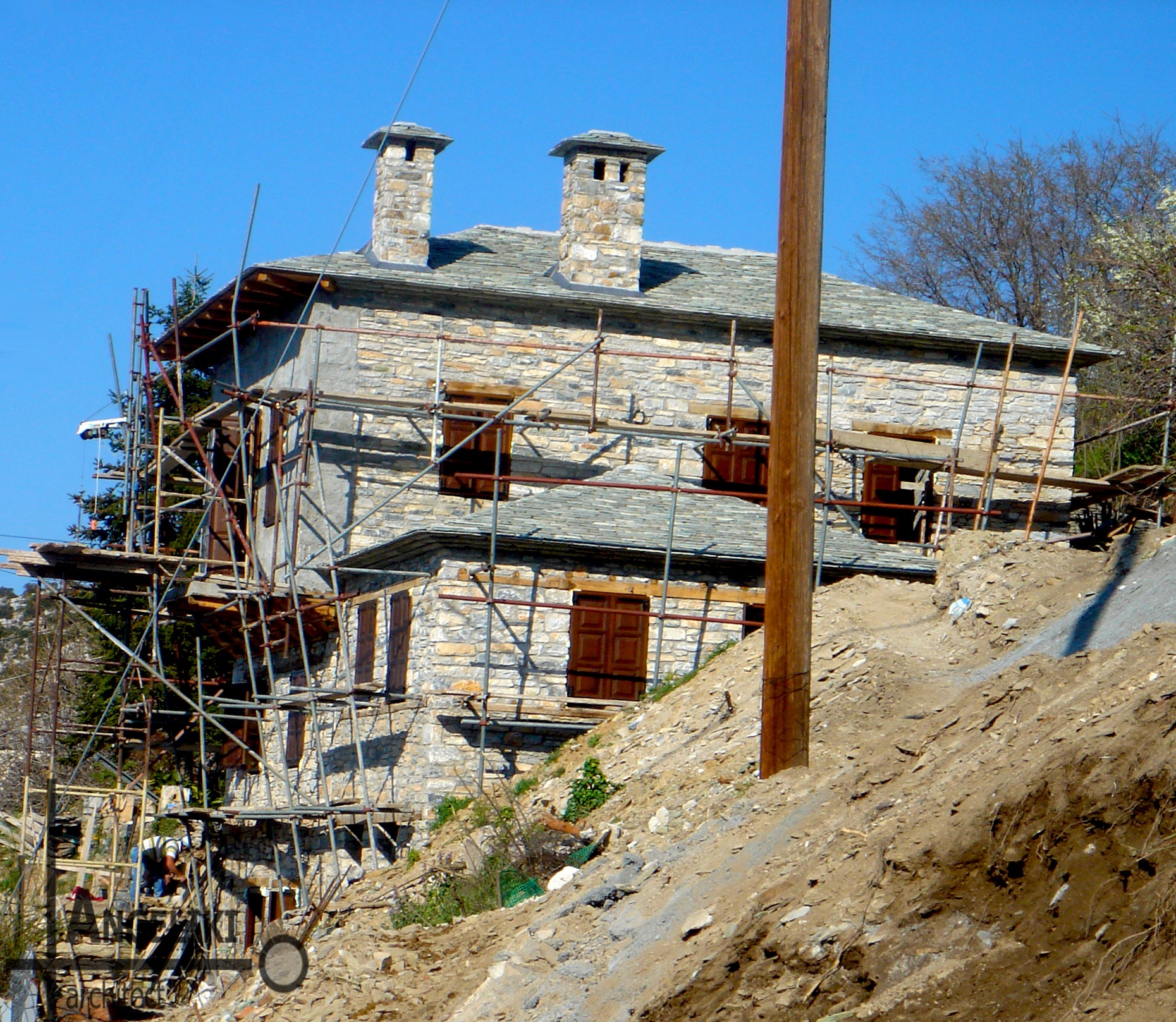 Τοιχοποιίες από λιθοδομή με παραδοσιακό αρμολόγημα, χαρακτηριστικά σαχνισία, ξύλινα στοιχεία όπως ξυλοδεσιές, φουρούσια, πρέκια, κουφώματα με ταμπλάδες, διακοσμημένα με σιδερένια μάνταλα, καρφιά και δεσίματα, παραδοσιακές στέγες με τις γκρίζες σχιστόπλακες, είναι μερικά από τα στοιχεία της μελέτης η οποία καθιστά τις κατοικίες πλήρως ενταγμένες στο οικιστικό σύνολο και τον ιστό του χωριού.