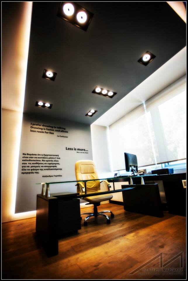 Αρχιτεκτονική μελέτη εσωτερικού χώρου | Σχεδιασμός γραφείου, βοηθητικών επίπλων, εσωτερικών θυρών | Μελέτη φωτισμού | Επίβλεψη